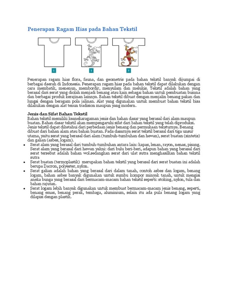 Gambar Ragam Hias Pada Bahan Tekstil : Macam Macam Teknik Ragam Hias Pada Bahan Tekstil Sekilas Bahan / Jenis motif yang menggunakan bentuk gambar berupa lingkaran, persegi dan unsur dasar seperti titik, garis disebut.. Jenis motif yang menggunakan bentuk gambar berupa lingkaran, persegi dan unsur dasar seperti titik, garis disebut. Penerapan ragam hias pada bahan tekstil dapat dilakukan dengan berbagai cara, antara lain sebagai berikut; Berikut ini contoh penerapan ragam hias pada produk kaos oblong, dengan teknik menggambar. Ragam hias flora, fauna, dan geometris pada bahan tekstil dapat dilakukan dengan cara. Tugas cermatilah contoh gambar di atas dan berikan pendapatmu!