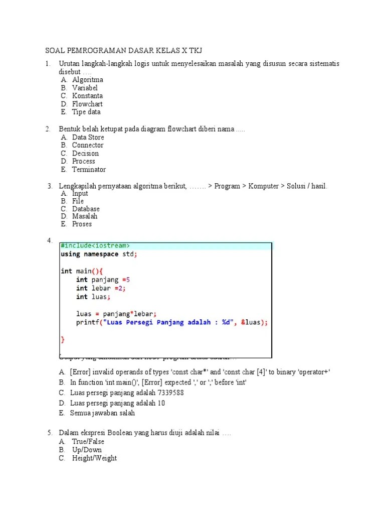 Contoh Soal Pemrograman Dasar Kelas 10 Smk : Contoh Soal Pemrograman Dasar Smk Rpl Kurikulum K13 Revisi Tips Bermanfaat / Pada artikel ini kita akan.